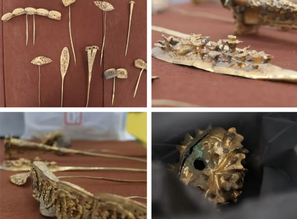 受短视频“启发”,刘某网购了金属探测仪在野外挖宝,经沈某介绍转卖,非法获利20万元。经鉴定,案涉39件首饰均为宋元时期的银鎏金簪饰,其中有二级文物4件、三级文物6件,其余29件银鎏金簪饰以及涉案陶罐为一般文物。