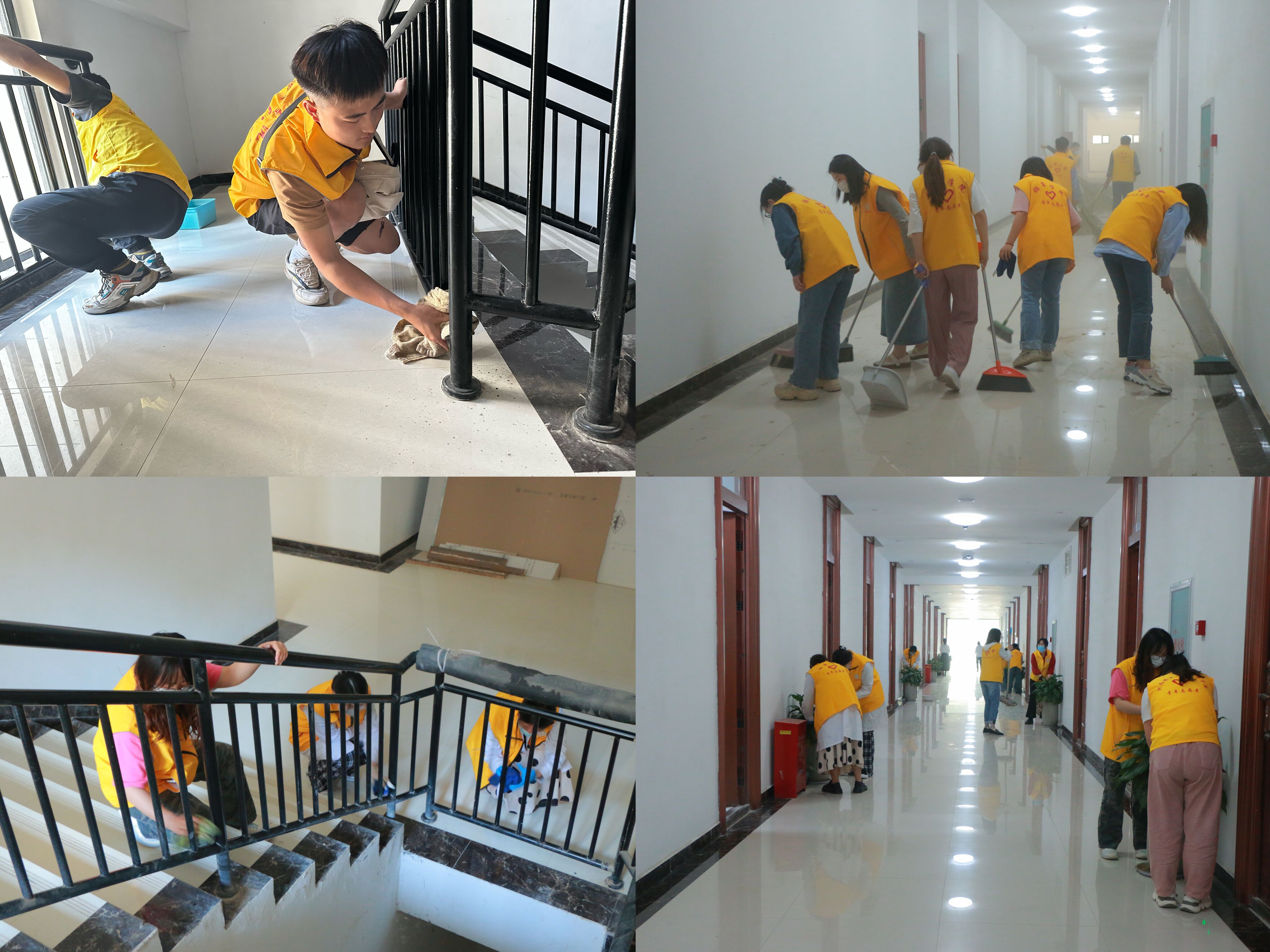 大扫除活动中,师生志愿者们身穿黄马甲,拿起各种工具,自上而下、从内到外对清洁区域进行“开荒式”清扫。志愿者们争先恐后、不怕脏不怕累、挥汗如雨,所过之处大厅、走廊、扶梯、绿植等焕然一新。志愿者们纷纷表示,通过亲自体验,深切感受到后勤保障人员为学校日常运转付出的艰辛,今后要更加自觉地维护他们的劳动成果,多做有益于展现学校师生良好精神风貌的事。