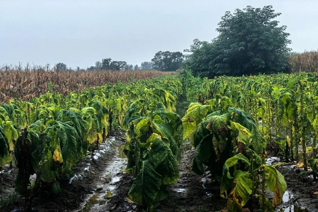 (叶协锋拍摄的尚有积水的烟田 拍摄时间为10月4日)