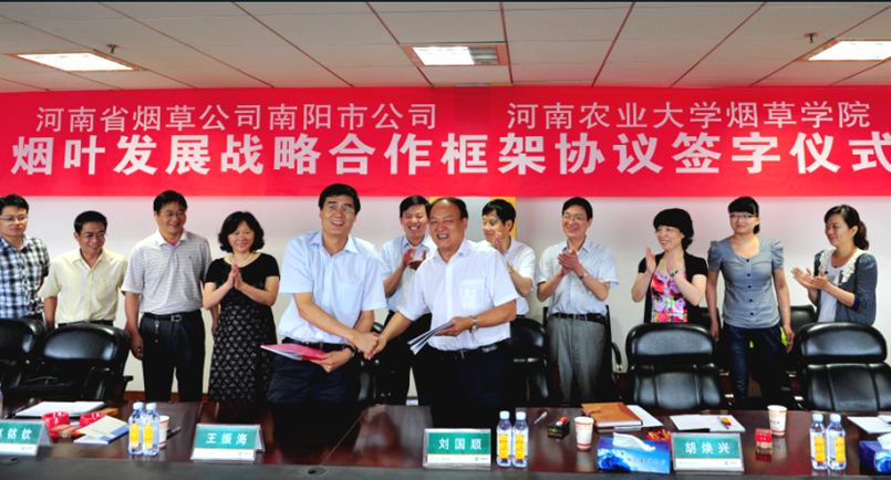 刘院长指出,双方此次合作是“顺天时、得地利、兴人和”之举,必将提升南阳烟叶的保障能力。王振海经理用三句话表达了对开展合作的期待——特别感谢河南农大长期以来对南阳烟叶发展的无私支持、特别期待河南农大为南阳烟叶发展提供更大的支撑、特别祝福双方合作能结出丰硕的果实。(丁松爽供稿)
