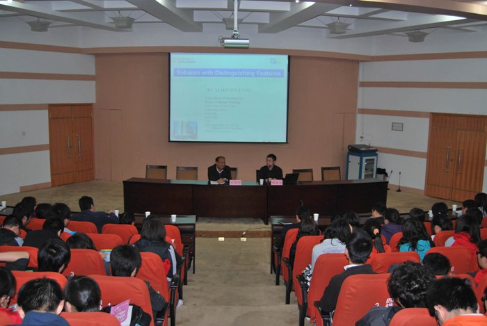 杨教授在会上作了关于“特色烟开发”和“烟草基因测序”的两项学术报告,详细阐述了特色烟的定义、形成及栽培技术,为大家带来了烟草基因研究的最新信息。此外,他还就基因测序技术的发展进程以及其对未来烟草基因研究的影响做了前沿报告。针对在座师生的积极提问,杨教授介绍了国外学生参与实验的做法,由博士、硕士生参与分课题研究,本科生从配培养基、刷瓶子做起参与研究生实验。刘院长要求全体学生参与到教师们的课题中来,把握前沿并创新知识。