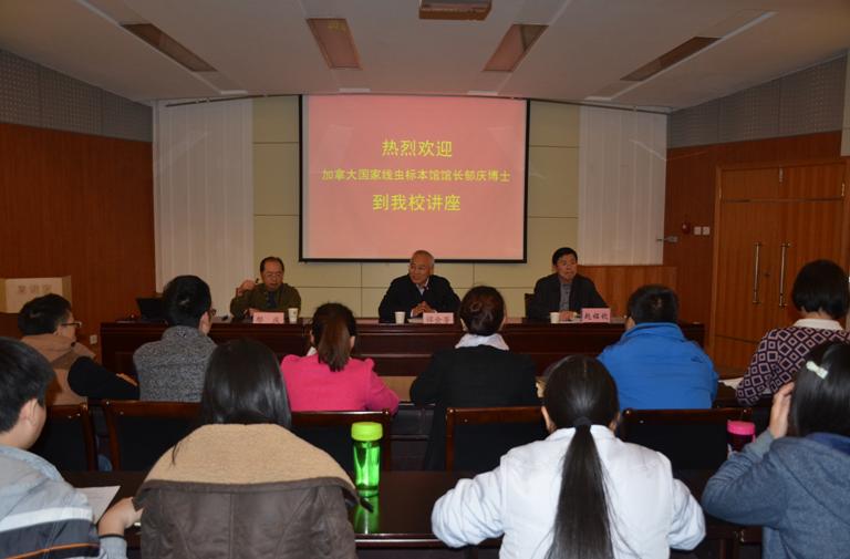 11月13日下午,加拿大国家线虫标本馆馆长、首席线虫分类专家、研究员郁庆博士应邀在校大礼堂第三报告厅为b次元