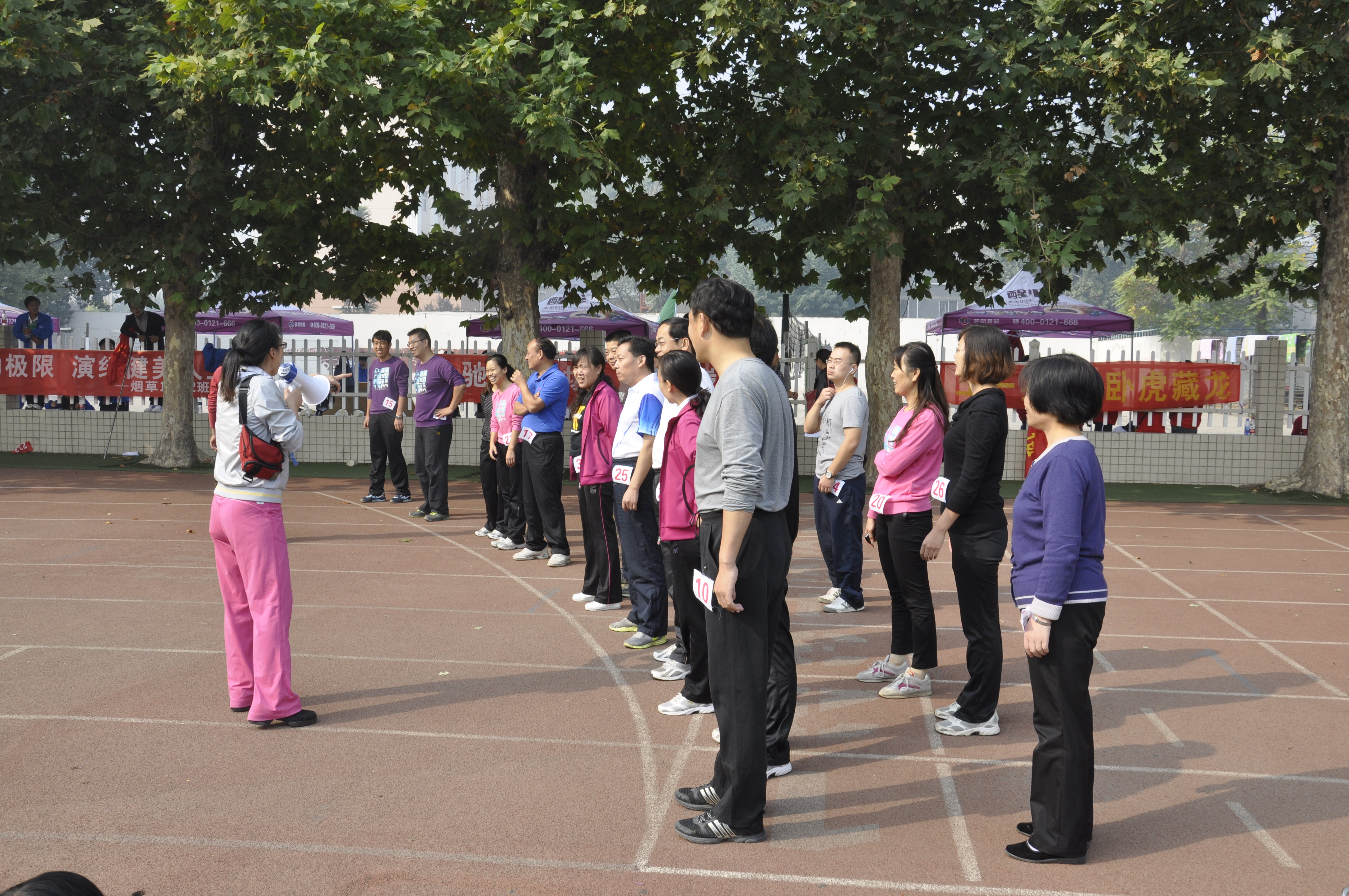 在校田径场成功举办了教职工健步行走比赛,赛程为4公里,为保证比赛的公平、公正、规范,我们邀请了体育学院巴玉峰、金洪亮、袁静、王建民老师作为裁判。比赛在上午10:30准时开始,随着比赛哨声的吹响,老师们健步如飞,冲向赛道,随着时间的推移,有些老师速度明显减慢,但他们咬牙坚持,运动员中有年长的教授,有年轻的博士,有巾帼不让须眉。经过近40分钟的紧张比赛,最终评出男子组黄五星等一等奖4名,时向东等二等奖6名。女子组张金玲等一等奖4名,李丹等二等奖4名。
