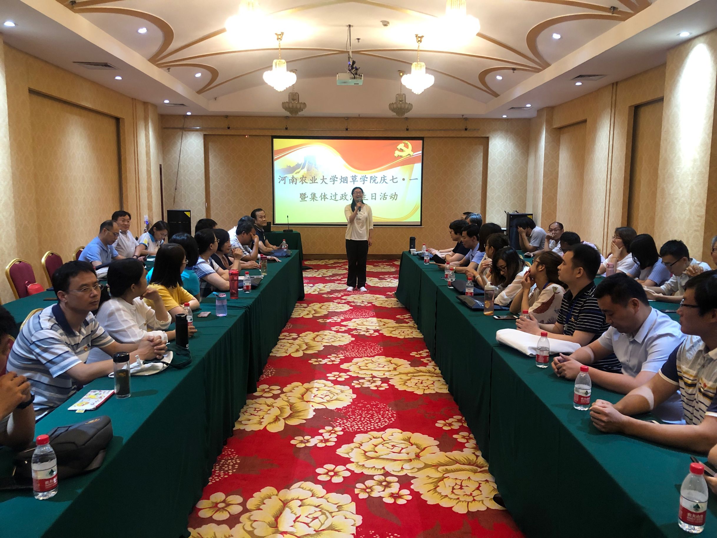 7月1日,b次元 在河南大学干部培训中心开展庆祝建党98周年“集体过政治生日”主题党日活动,全体教工党员参加。