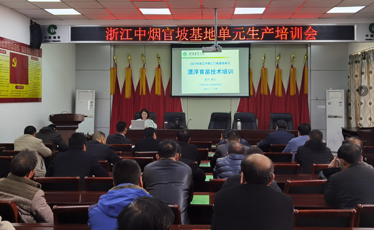“牛马年,广种田”。考察组对5个基地单元逐一进行了会议培训,黄五星副教授、韩丹博士认真讲解了烤烟壮苗培育的关键技术:(1)首先介绍了2021年度烤烟价格上涨情况与利群品牌的适配率需求;介绍了矮茎与高茎两大壮苗类型的指标特征,具体对比了传统育苗和集约化育苗技术的发展状况;(2)从烟苗生育期划分及各生育期特点、育苗管理环节入手,系统介绍了漂浮育苗技术及其关键点;(3)对苗床管理的常见问题进行了梳理,逐一讲解了其解决对策;(4)最后还扼要介绍了近期育苗工作的注意事项,特别提出了寒流降温天气的应对措施。