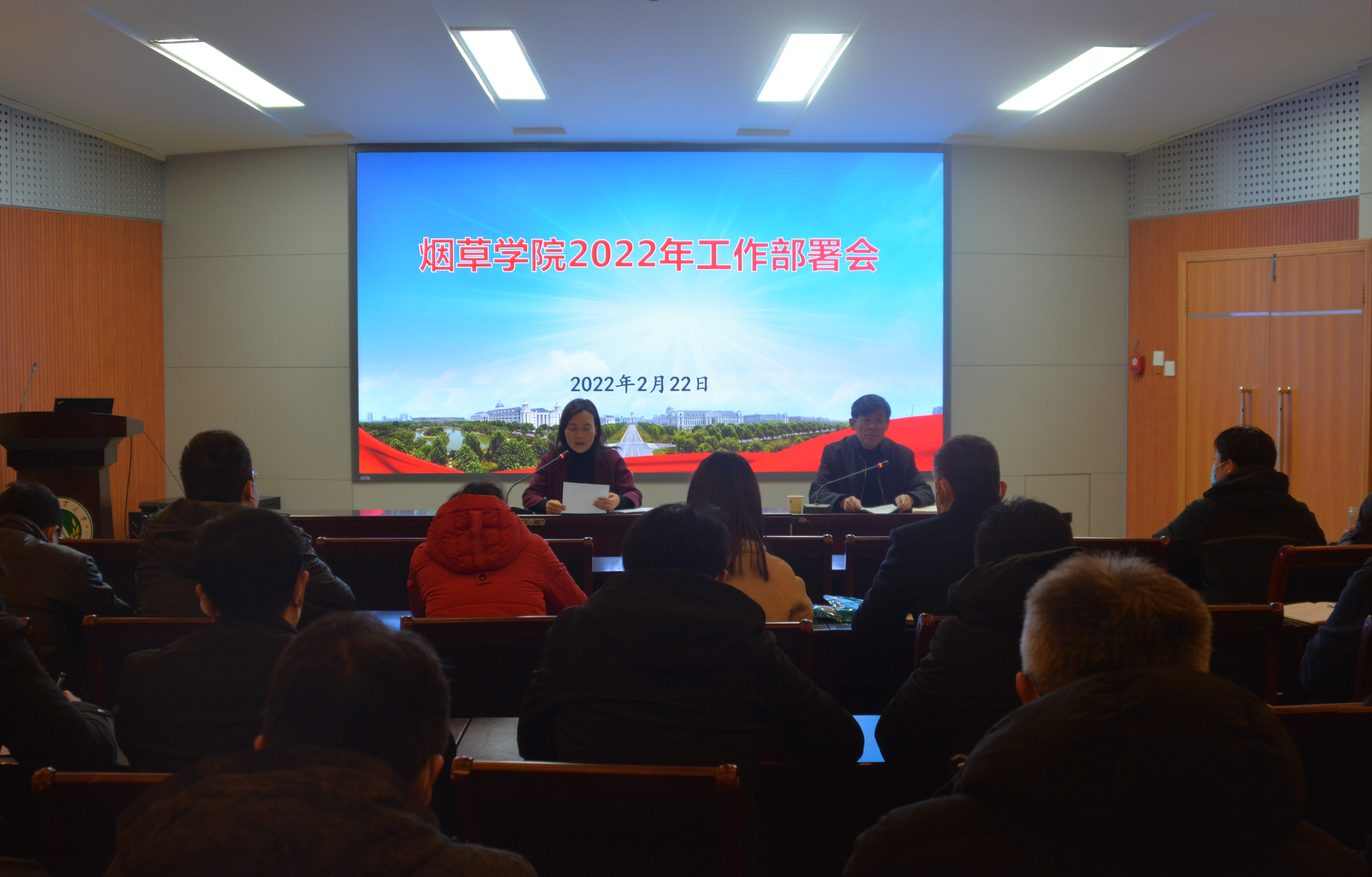 2022年工作部署会,学院领导班子和全体教职工参加了会议,院党委书记张利冰主持会议。