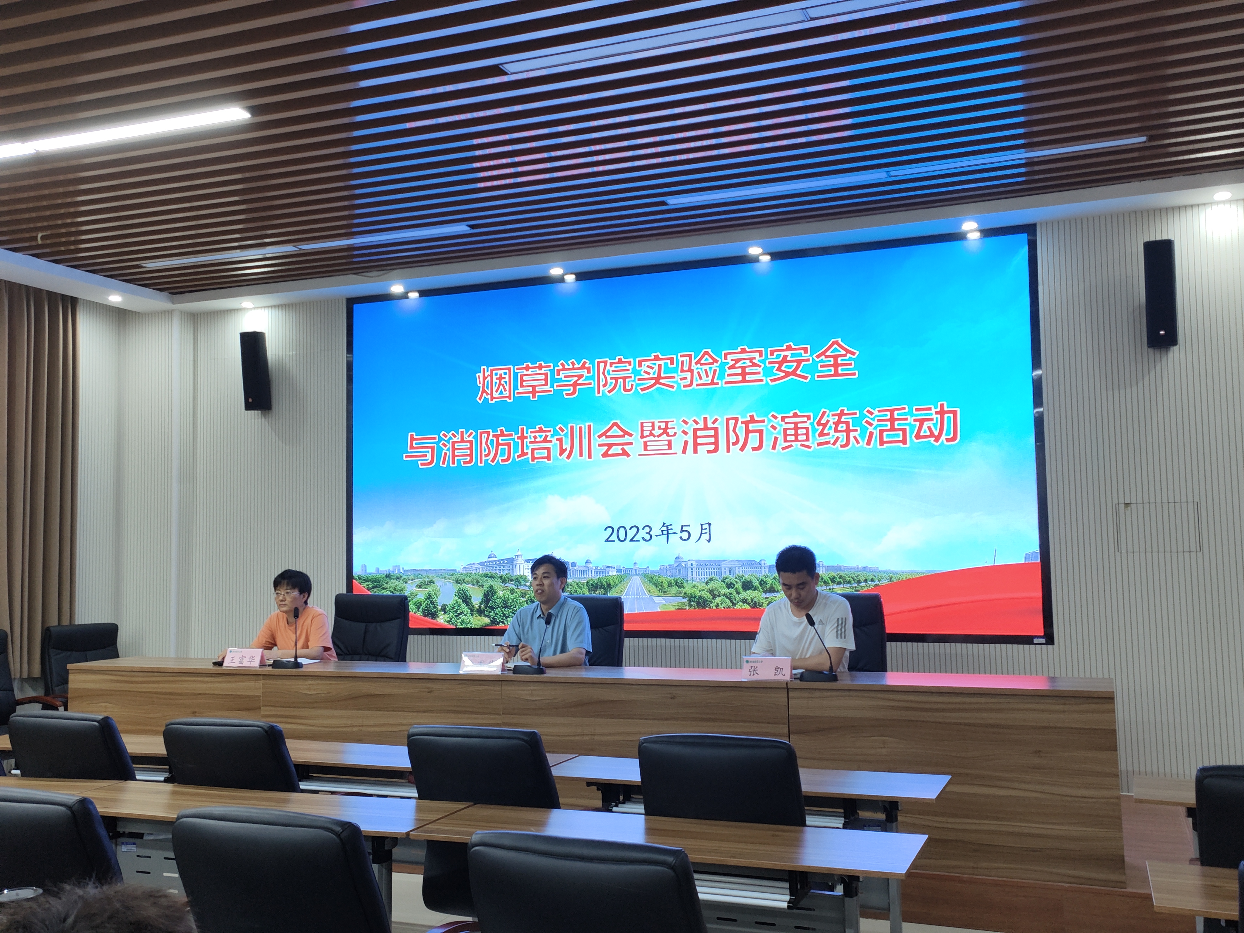 5月18日下午,学院在力行楼229会议室举办实验室安全与消防培训会暨消防演练活动,党委副书记史军伟出席活动,教学实验中心王富华老师、研究生辅导员张凯及全体在校研究生100余人参加活动。