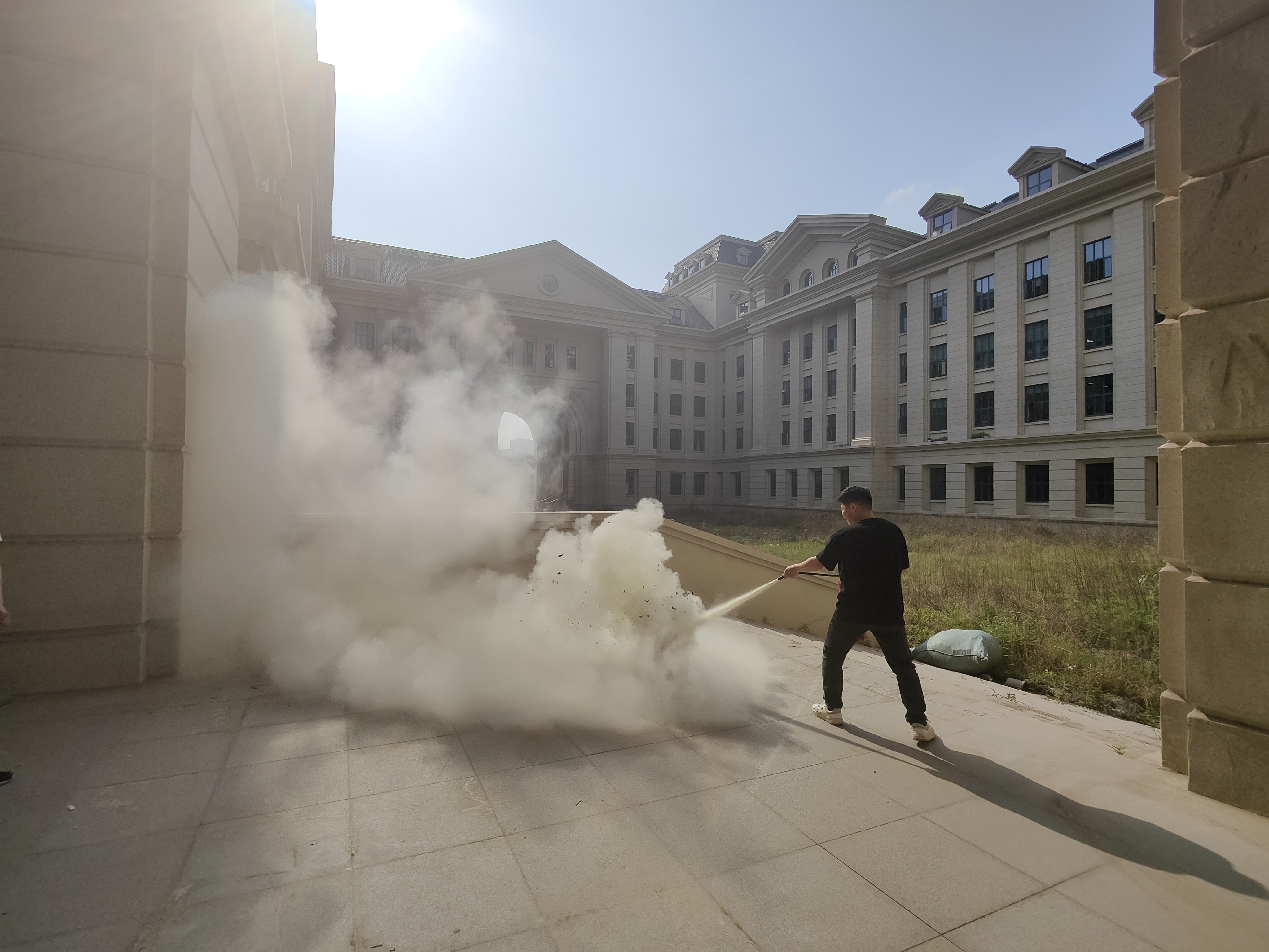 会议结束后,在通风良好且空旷的地方开展了消防演练活动。张凯介绍了火灾的类型和本次消防演练灭火器的使用范围和方法。随后工作人员点燃人工火桶,并从现场选择一名学生代表进行灭火“实操”,通过正确使用灭火器扑灭火桶,此次消防演练活动圆满结束。