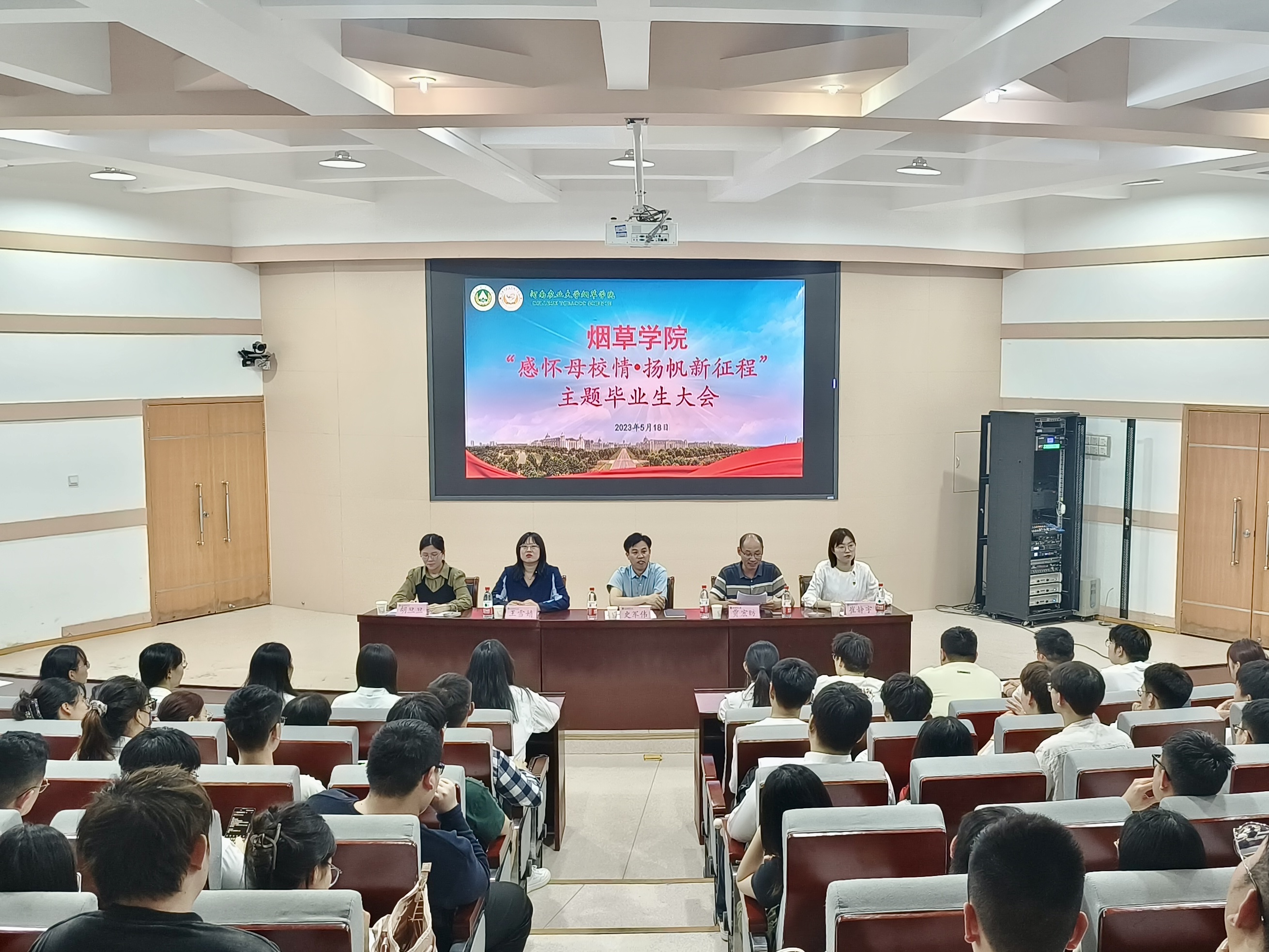 为进一步推进毕业生工作,5月18日晚,学院于文化路校区300人报告厅召开了“感怀母校情,扬帆新征程”主题毕业生大会。院党委副书记史军伟、教学秘书贾宏昉、团委书记王雪婧、辅导员胡旦旦、崔静宇出席会议。2023届全体毕业生参会。会议由崔静宇主持。