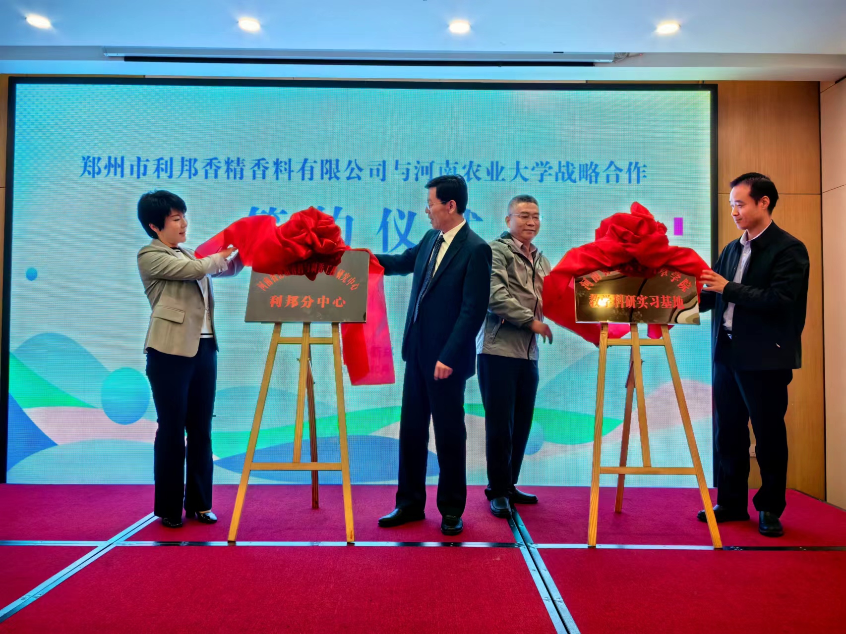与郑州市利邦香精香料有限公司战略合作签约仪式在新郑市举行。院长赵铭钦、副院长宋朝鹏、新郑市人大常委会副主任张顺安、市人民政府副市长王淑慧、郑州市利邦香精香料有限公司董事长李海彬、总经理杨国选出席仪式,新郑市政府相关负责人、b次元