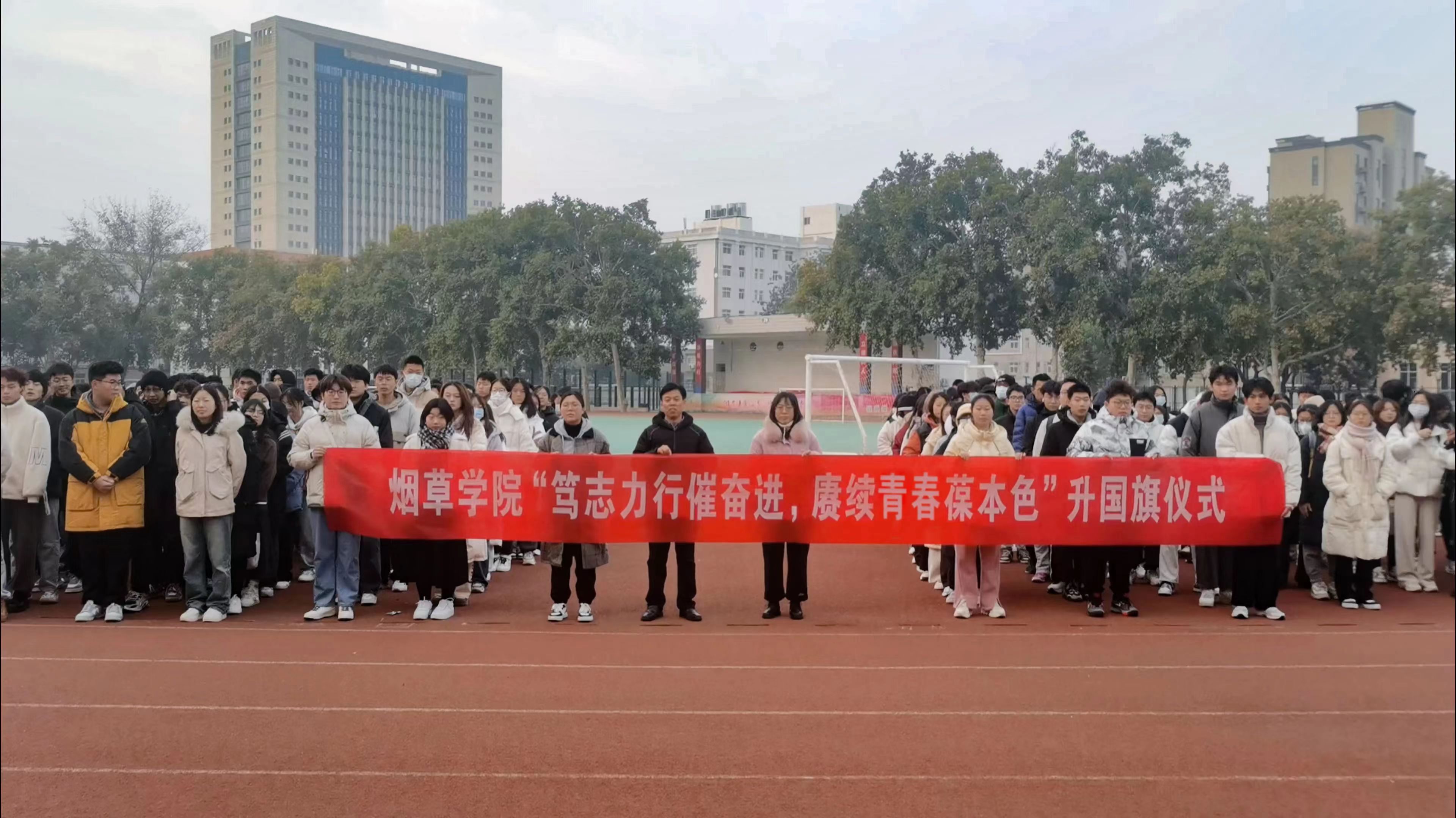11月13日清晨,b次元 于文化路校区操场举行“笃志力行催奋进,赓续青春葆本色”升国旗仪式,院党委副书记史军伟、团委书记王雪婧、团委老师胡旦旦和2023级全体同学参加此次升旗仪式。