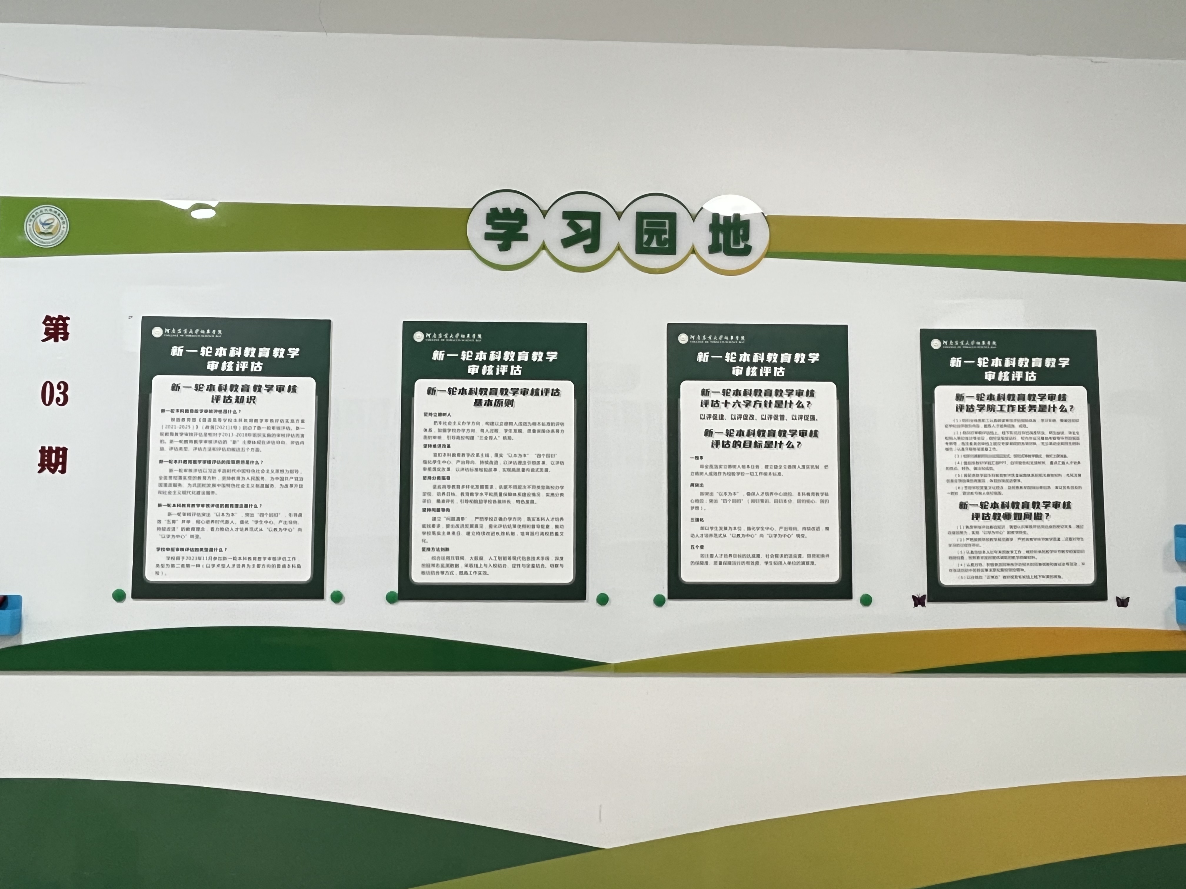 此外,学院还通过学习园地、微信公众号等媒介,持续宣传教育教学评估相关内容。