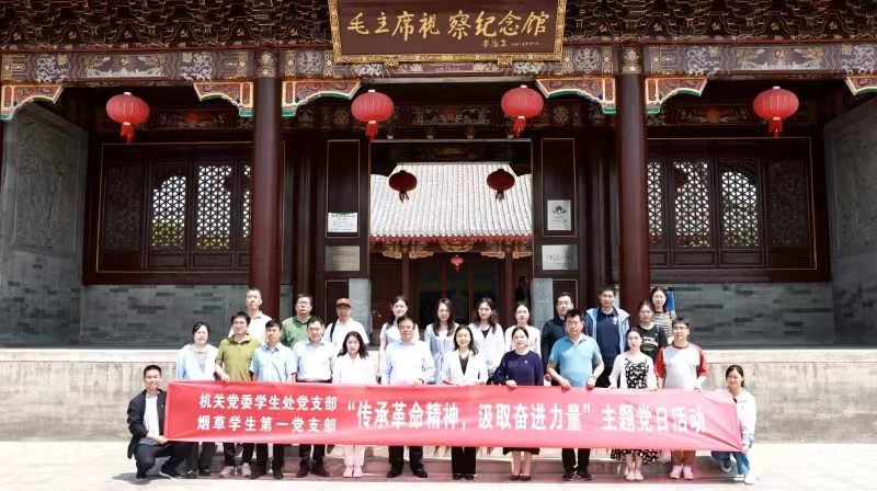 烟草学生第一党支部与结对共建的机关党委学生处党支部赴襄城县毛主席视察纪念馆联合开展“传承革命精神,汲取奋进力量”主题党日活动。机关党委学生处党支部书记徐峰、b次元