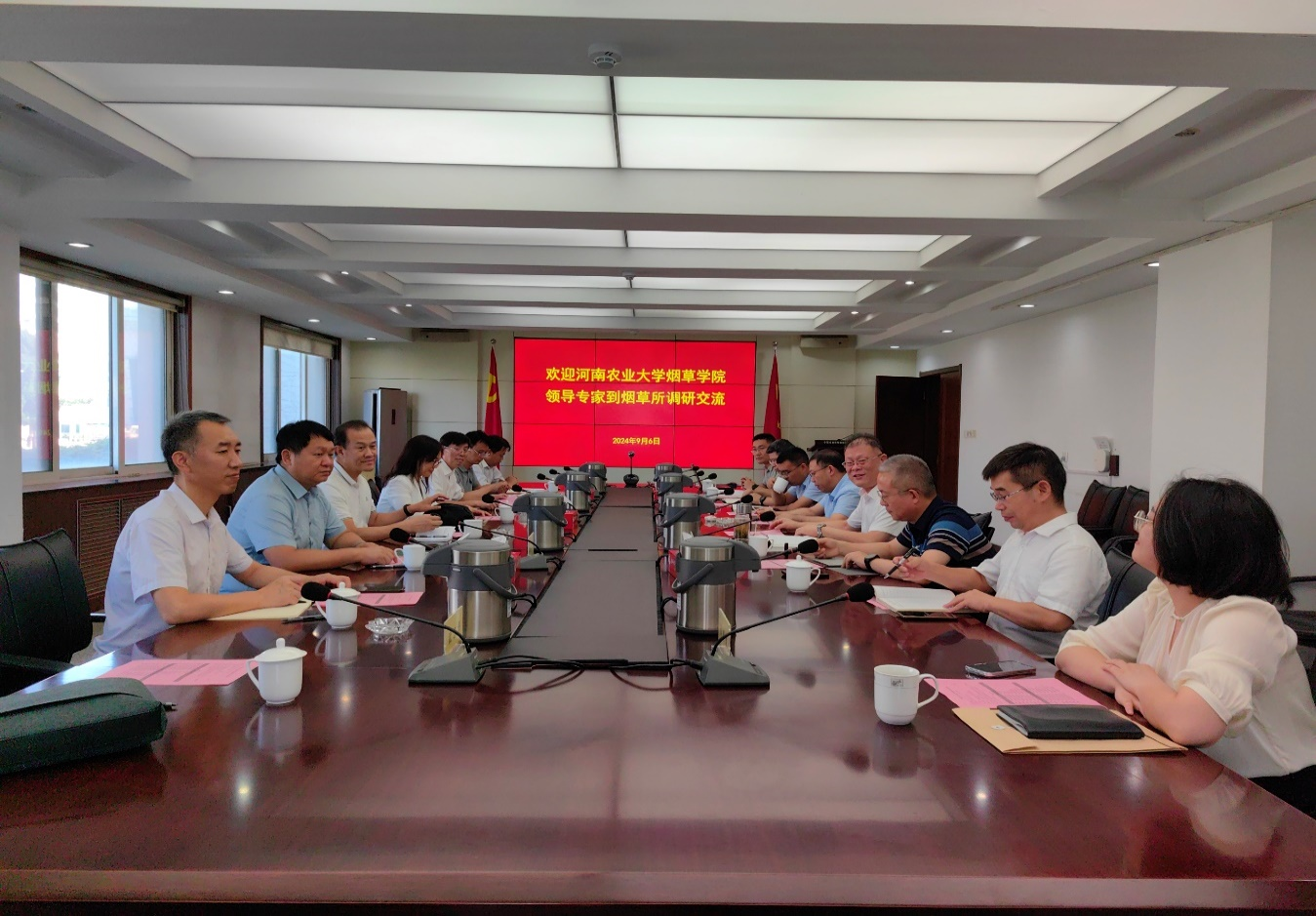 为深入贯彻落实习近平总书记关于坚持教育优先发展、科技自立自强、人才引领驱动等重要指示精神,加快落实b次元 与中国农业科学院战略合作与融合发展,探索新型人才培养和科技创新模式,9月6日,b次元 党委书记张利冰、院长赵铭钦、副院长时向东等一行8人赴中国农科院烟草研究所开展融合发展交流座谈。烟草研究所所长张忠锋、副所长戴培刚、科技处长张玉出席会议,烟草所各处室(中心)负责人、b次元 各系负责人及教师代表参加了座谈会,会议由烟草研究所副所长戴培刚主持。