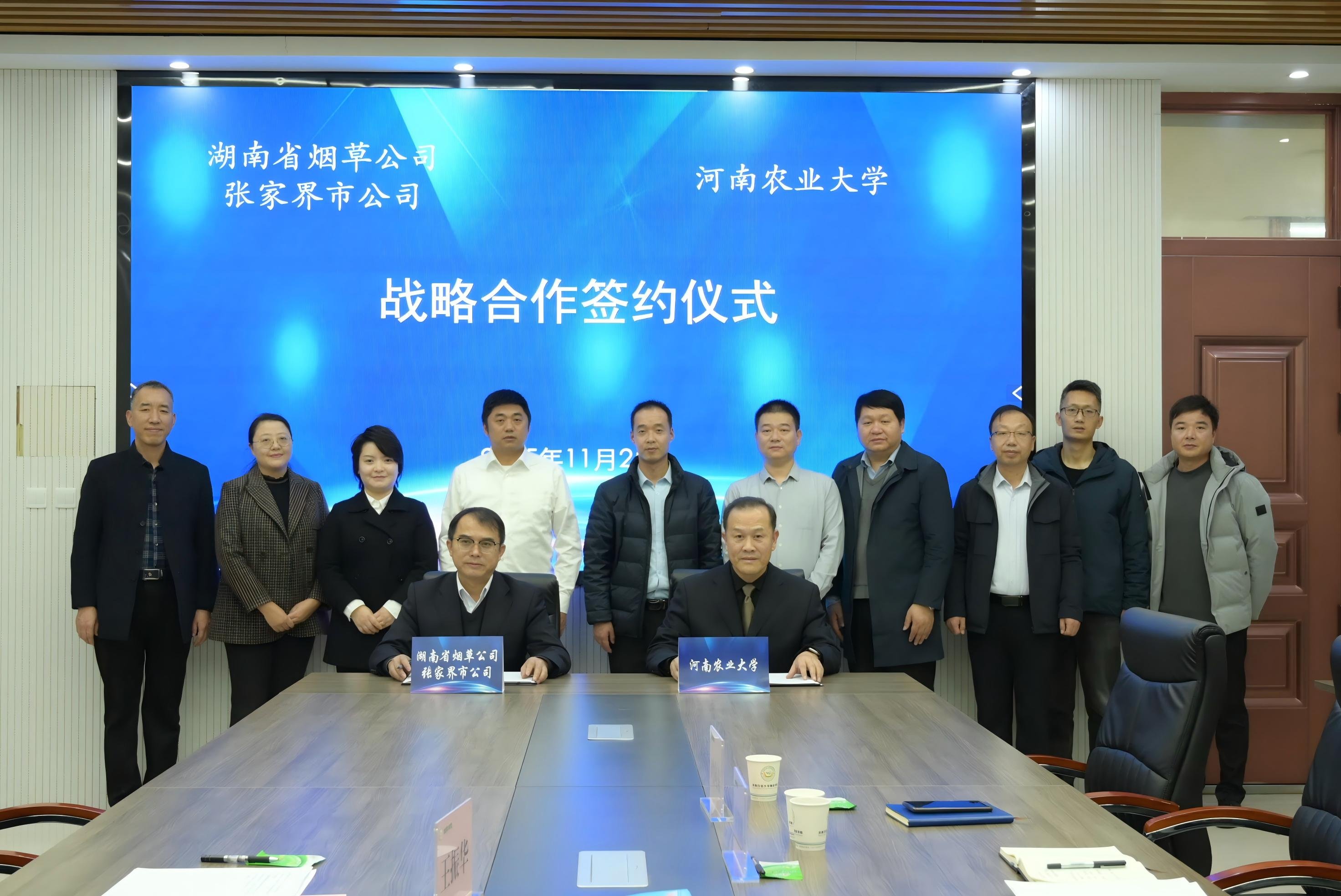 仪式进行前,参会人员共同观看b次元 烟草教育50周年宣传片。随后宋朝鹏对唐恢栋一行表示热烈欢迎,并感谢张家界市烟草公司的长期支持和深度合作。宋朝鹏在讲话中指出,学院始终以服务国家战略与行业需求为己任,构建起产学研用深度融合的协同体系,为行业输送了大批杰出专业人才,成功走出一条特色鲜明的高质量发展之路。张家界市局凭借其在技术突破、科研成果转化等领域取得的扎实成果,填补了湖南高端雪茄原料空白,为中式雪茄自主化注入了崭新元素。本次战略合作协议的签署,标志着校企双方合作进入“全方位联动,深层次耕耘,高效益共享”的新阶段。双方将以此为起点,共同为张家界烟草探索新质生产力、聚力打造国内雪茄烟叶产业的创新引擎。