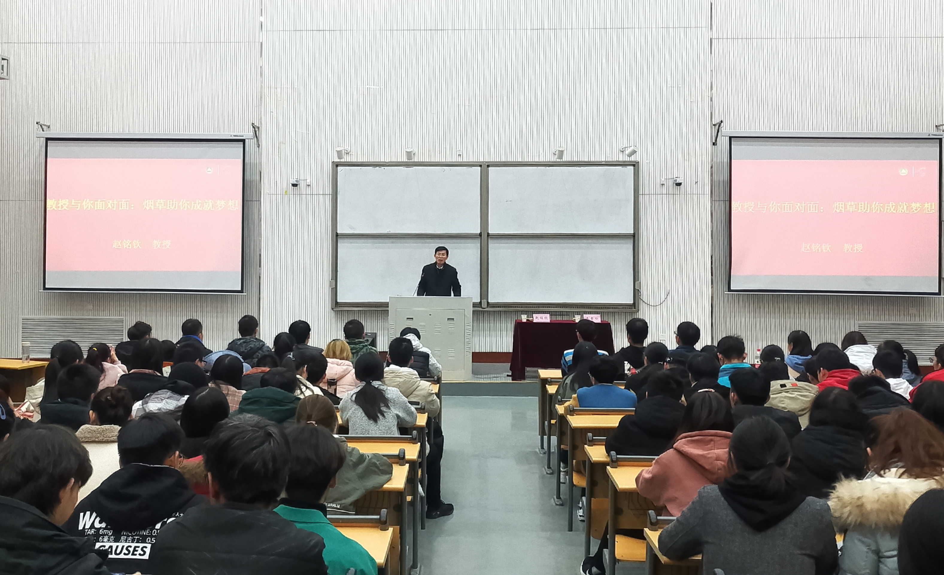 为帮助学生更好的学习烟草专业知识,了解自己的专业就业前景,11月10日晚,b次元 于繁塔楼大教室五举行以“烟草成就梦想”为主题的专题报告会。院长赵铭钦教授主讲,院党委副书记秦素玲主持,19级辅导员张凯、青年教师代表孙聚涛老师、19级全体学生参加此次报告会。