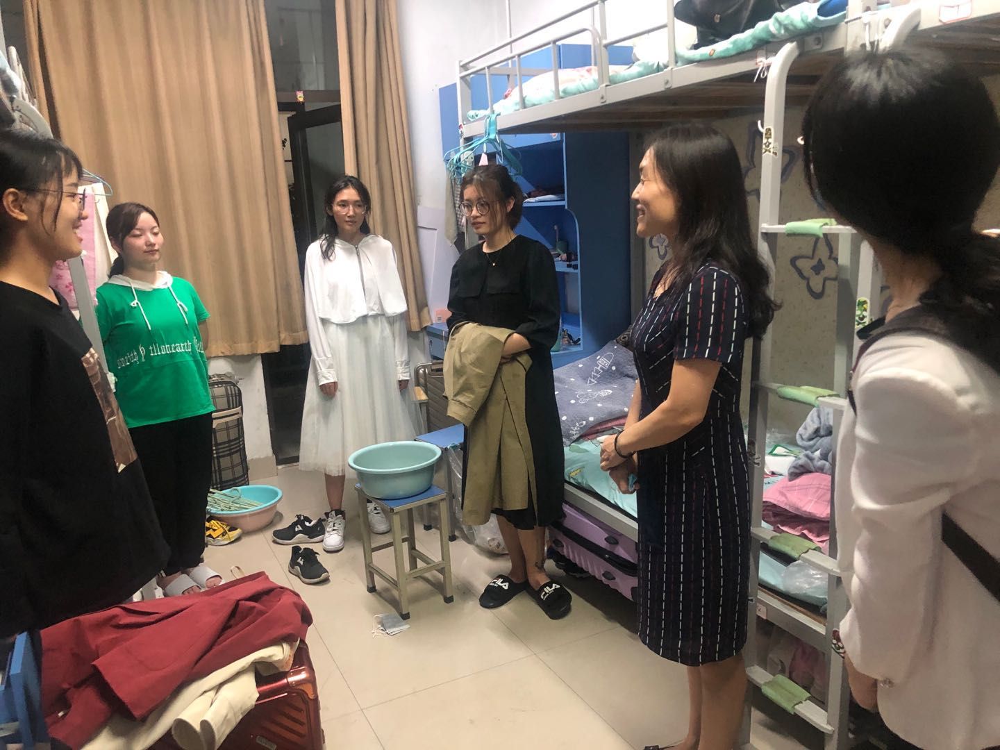 晚上,学院领导和老师们到新生宿舍进行走访。亲切询问新生开学感受,及时了解学生思想动态。在走访过程中,领导老师们提醒大家提高自我保护意识和警觉意识,注意宿舍安全和财产安全问题。同时还嘱咐同学们,积极参与各项活动,快速融入大学生活,在b次元