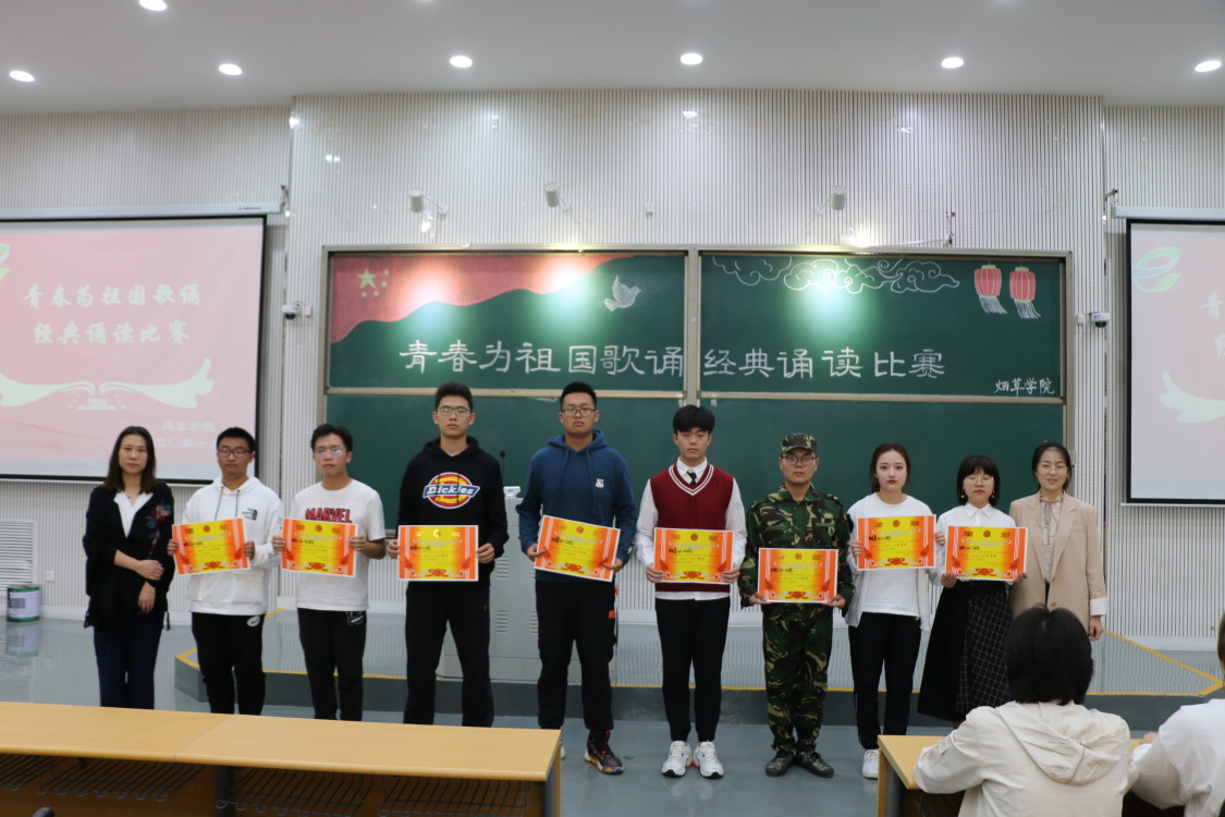 整场比赛气氛热烈,秩序井然,凝聚青春正能量,弘扬伟大爱国情,让同学们倍受感动和鼓舞。经过评委认真细致的评审,最终烟草20-4班获得一等奖,烟工20-2班、烟草20-2班获得二等奖,烟工20-1班、烟工20-4班、烟草20-3班获得三等奖,烟工20-3班、烟草20-1班获得优秀奖。