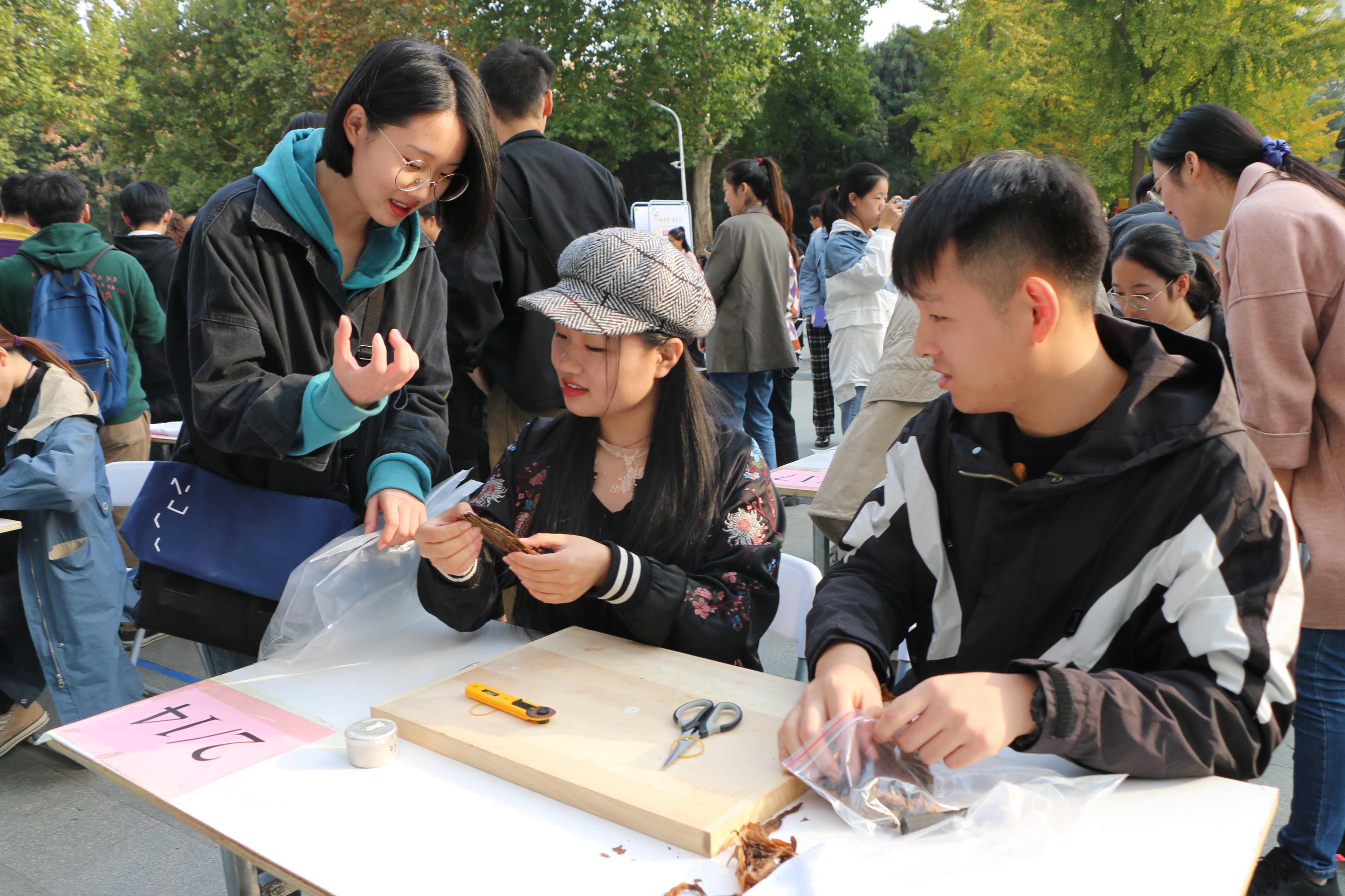 此次比赛共有23支队伍参加比赛,除b次元 研究生、本科生组成的18队以外,还吸引了来自机电、植保、生命等学院的5支参赛队伍。赛前,时向东教授先对雪茄卷制的基本方法和技巧进行了详细讲解,他幽默的语言和耐心的讲解使同学们听得津津有味,引得过路学生驻足观看。随后有雪茄实验室的研究生进行现场演示,他们全神贯注的神情,娴熟精准的操作,无不彰显着b次元 研究生高超的专业技能水平。比赛中,各小组成员从茄芯的准备到茄套的定型,再到茄衣的处理,都分工合理,配合默契。时向东教授在现场对雪茄零基础的学生耐心的指导,并亲自做示范。中场休息时,2020级新生张智嫣表演了精彩纷呈的二胡曲目《赛马》。