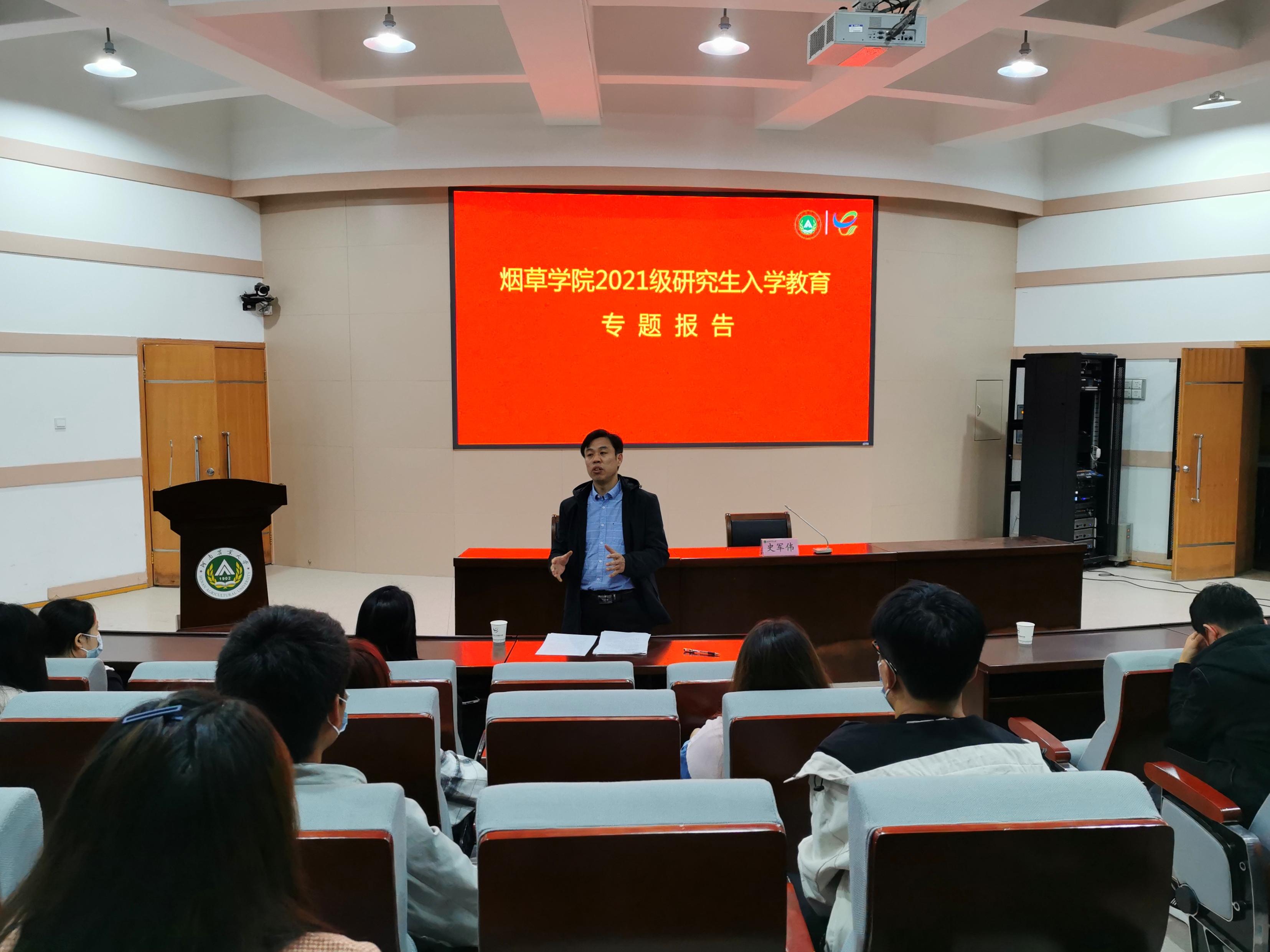 副院长时向东对学院研究生培养计划、论文发表、成果申报、学籍管理、毕业条件、学位授予条件等有关规章制度和管理办法进行了详细介绍,勉励研究生要树立远大科研理想,努力为烟草行业发展贡献自己的力量。党委副书记史军伟对研究生安全管理、奖惩管理、奖助学金评定以及学校秋季疫情防控工作要点等进行了详细介绍。教育引导研究生认真学习和遵守宿舍、实验室等重点场所相关安全管理规定,确保每名同学一入校就树立起安全防范意识。