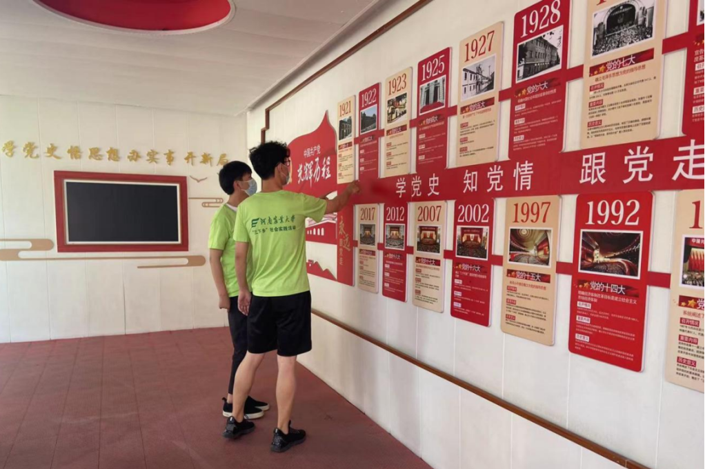 6月20日上午8时,实践团队在二七广场地铁站集合完毕一同前往二七塔参观学习。队员们驻足于一幅幅生动的文字、一张张清晰的图片和一件件充满故事的文物前,仿佛置身于慌乱的战争年代,感受着革命先烈在共产党的领导下不畏强敌、不惧牺牲的英勇斗争精神和铁肩担道、勇立潮头的精神。跟随不同的历史画面,我们学习了林谦祥、施洋等烈士的光辉事迹,了解了京汉铁路的修建、早期铁路工人的斗争生活,京汉铁路工人运动以及悲壮的二七惨案。此外,展厅中陈列的报纸和书籍,壁上附着的工会成立的照片和宣言。让我们回望历史,深刻的了解学习“坚定信仰、忠诚为民、敢于斗争、勇于担当”的二七精神。