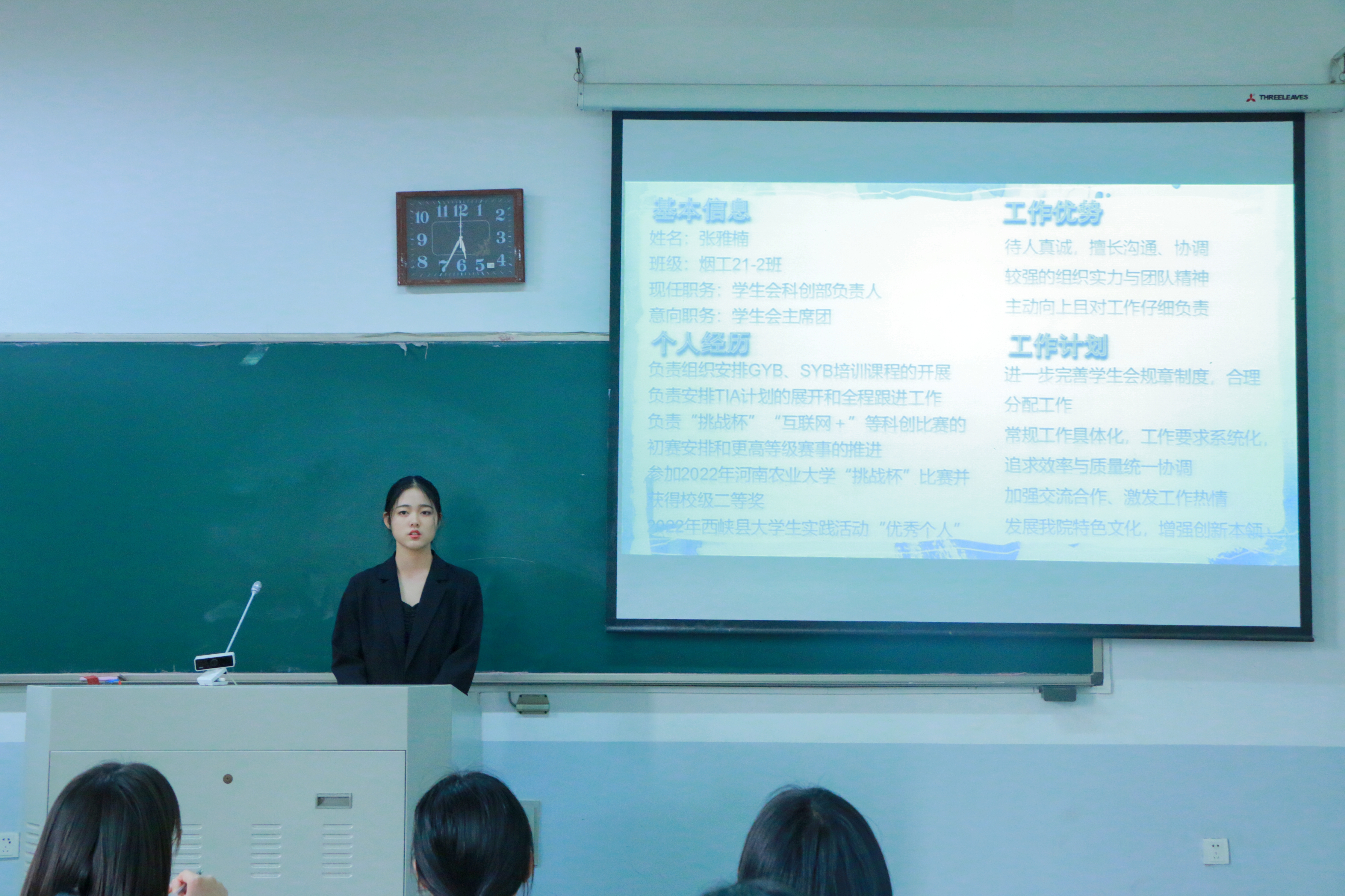 此前,各学生组织换届候选人已经通过个人申请、资格审查、笔试和无领导小组讨论四个环节的考核,脱颖而出进入到最后环节。
