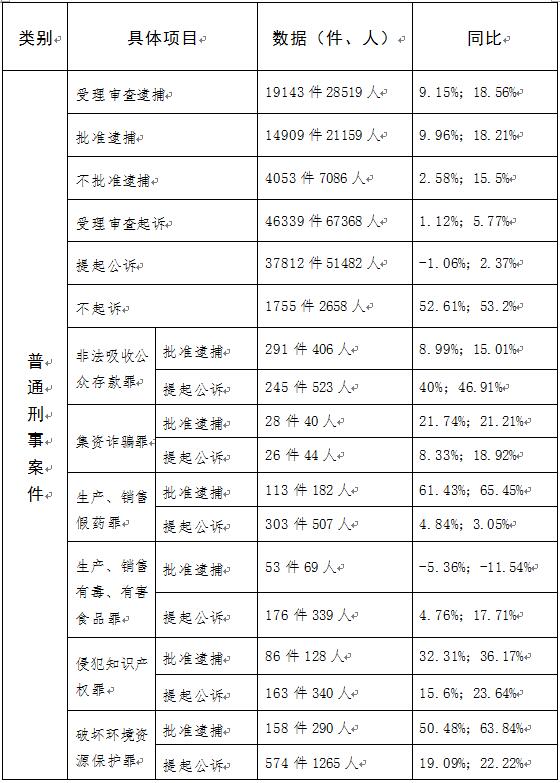 三是推进生态环境保护攻坚战取得实效。1-6月,共依法批准逮捕破坏环境资源保护犯罪158件290人,同比分别上升50.48%和63.84;提起公诉574件1265人,同比分别上升19.09和22.22%。