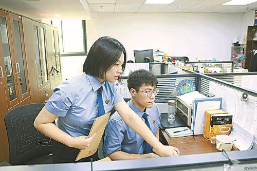 7月,办案检察官与助理开展案情研判。