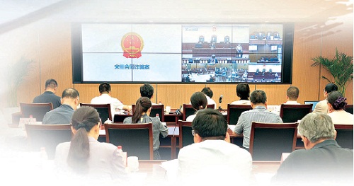 今年7月,静安区法院公开开庭审理宋某涉嫌合同诈骗案,最高检第五评议组赴现场开展听庭评议。