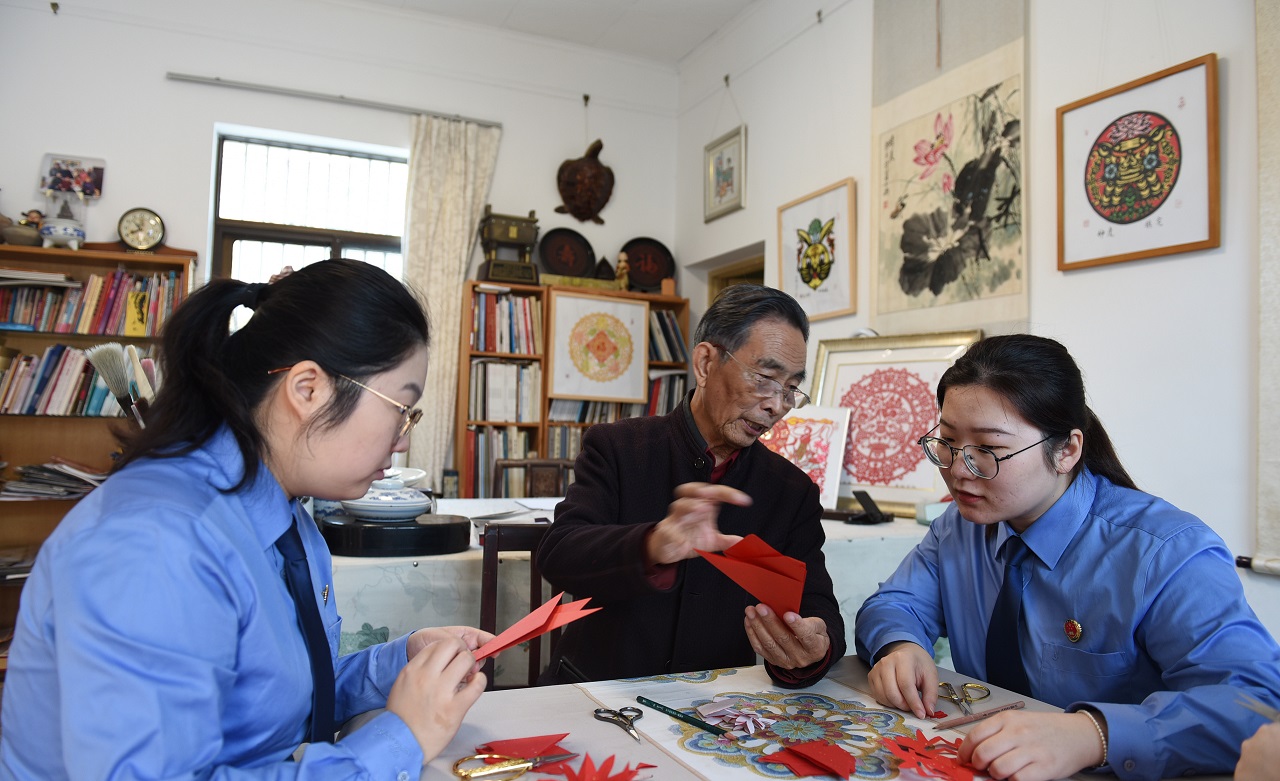 近日,江苏省金湖县检察院公益诉讼检察官走访江苏省非遗项目金湖剪纸传承人陆功勋,通过交流探访了解金湖剪纸保护传承,挖掘检察公益诉讼助力非遗传承发展的新路径。
