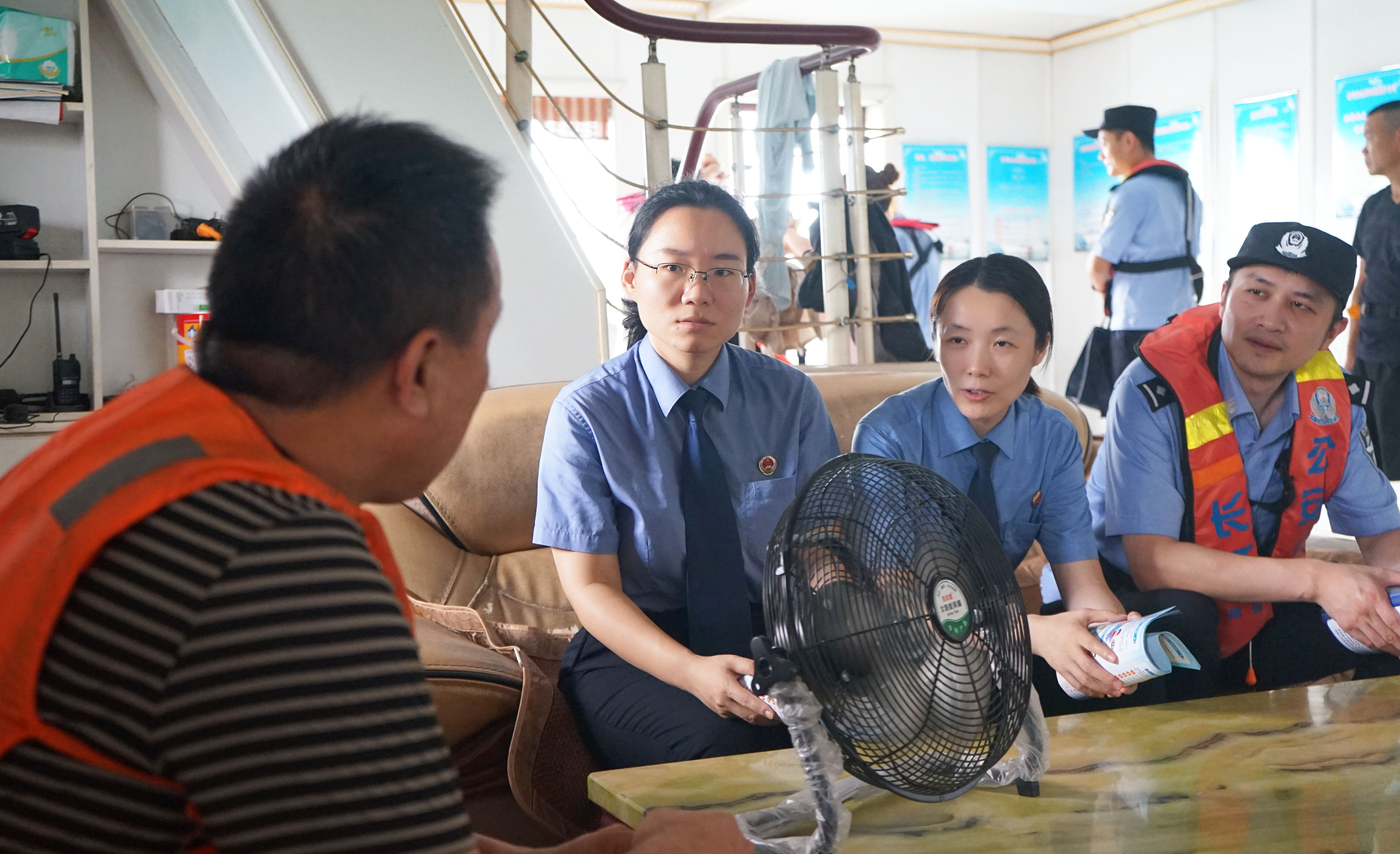 近日,江苏省南通市崇川区检察院联合南通海事局、长江航运公安局南通分局,就水上作业及通勤安全开展普法宣传,在长江锚地随机选择货船,登船检查船舶安全配员情况,并提醒船员防范电信网络诈骗。