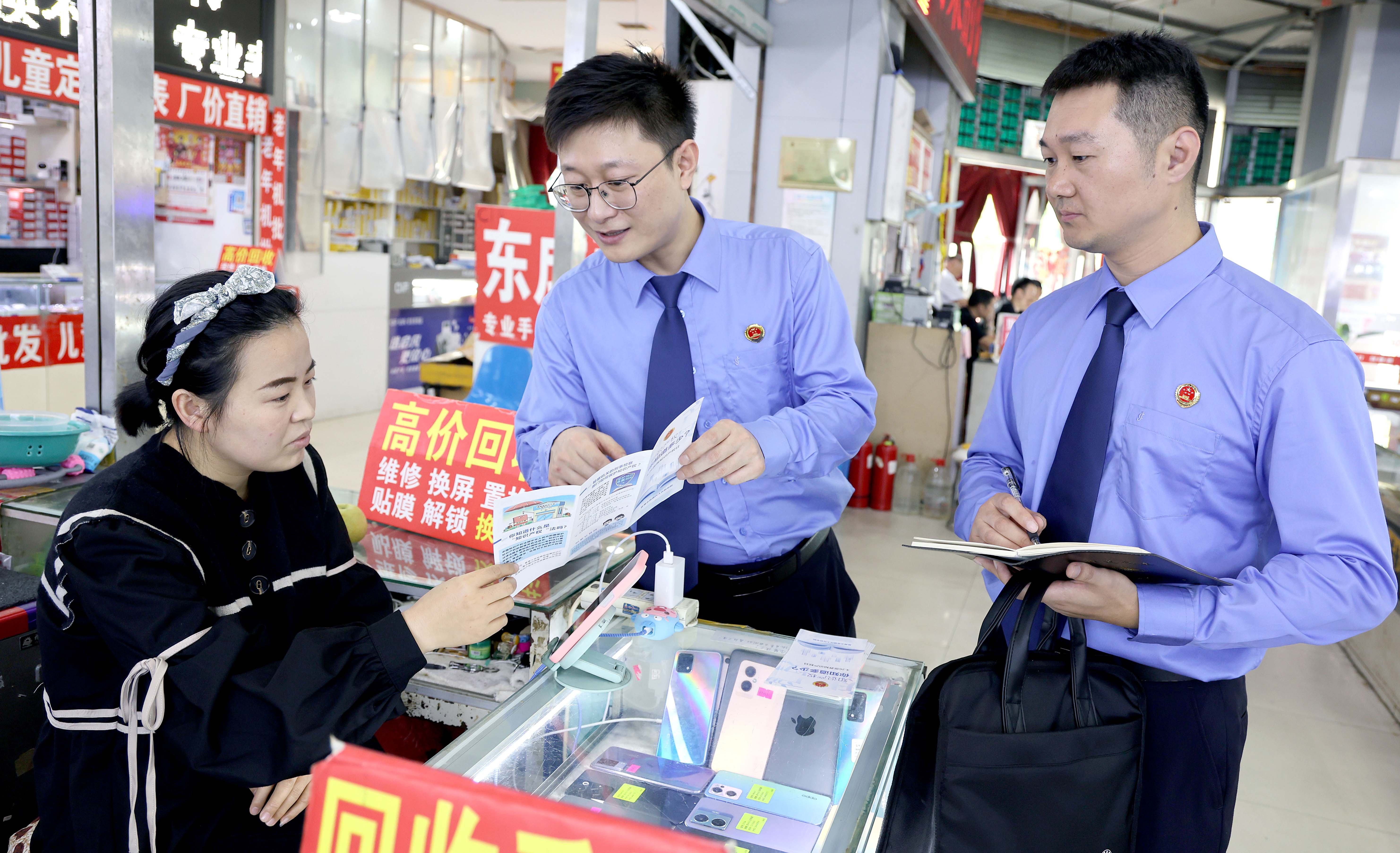 近日,江苏省徐州市鼓楼区检察院干警走进辖区电子市场,开展知识产权保护普法宣传,通过向商户发放宣传手册、展示侵权芯片,结合侵权案例解读法规,指导商户辨风险、消费者识正品。 □通讯员 金磊 孙洁 摄