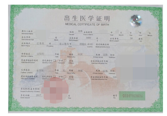 婴儿的出生证明。这个孩子刚出生,还没认清父母是谁,就被卖到了别人家。