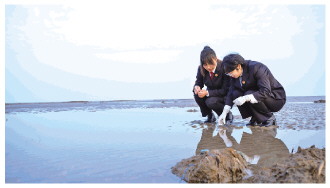 图为盐城市人民检察院检察干警调查湿地生态保护情况。 冯宾 摄