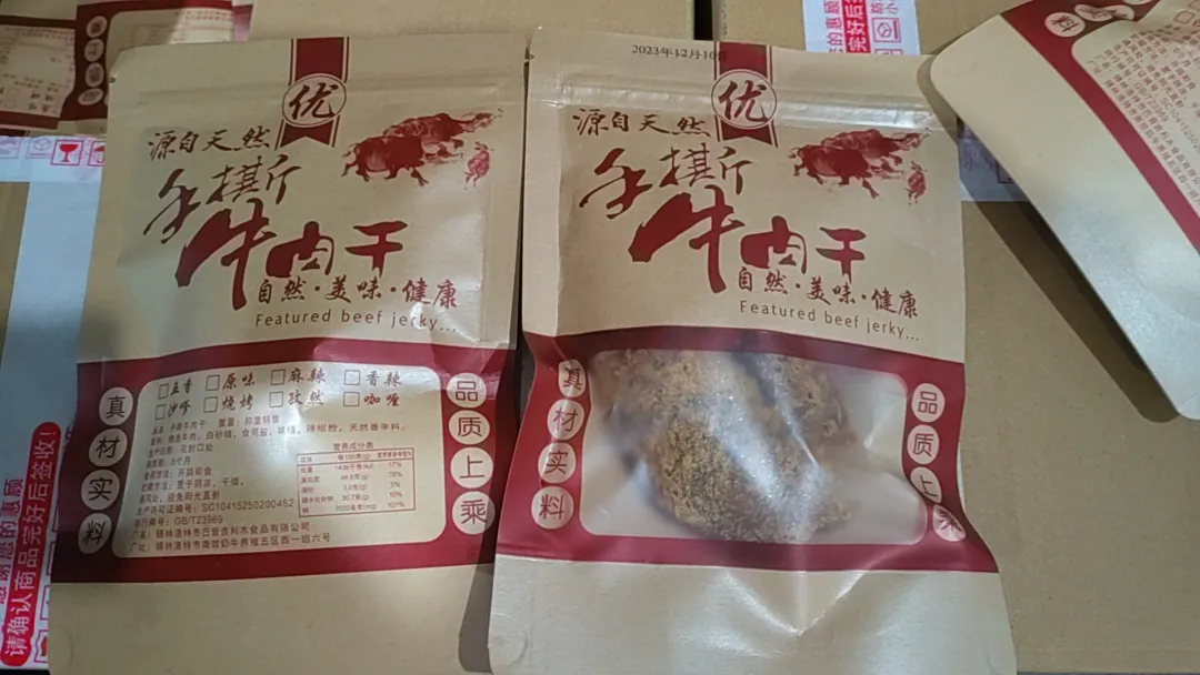 与此同时,史某在镇江租了一间店面作为“牛肉干”的二次包装车间,招聘了工人,将他从郑某处采购回来的“特制”鸡肉干,拆包、称重,分装进标有牛肉干字样的包装罐、包装袋,再用机器封口。为了以假乱真,史某编造了杭州某食品公司和某电子商务公司作为“牛肉干”的出品商和销售商,并套用了网上公开的食品公司生产许可证编号,自己设计、打印包装说明书和标签。