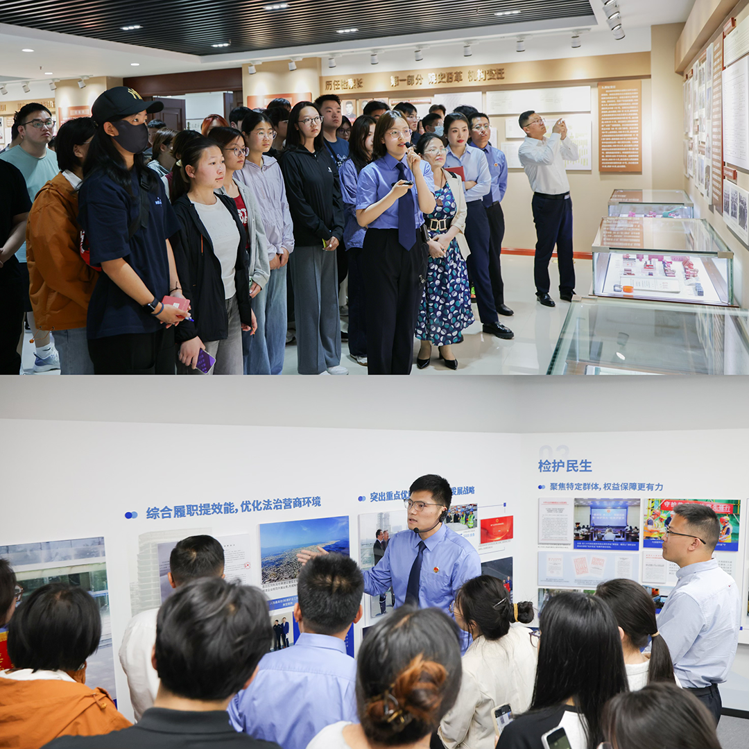 活动首站,代表和师生们在院史馆全面了解检察机关历史沿革及职能发展历程。一份份法律文书、一张张履职照片,让参观者直观感受到民法典从文本到实践的生动转化。在党建活动中心,代表和师生们参观了新时代检察精神展示墙、“涉外检察”展厅、数字检察平台演示等功能板块,深入了解了检察机关在服务大局、司法为民、法律监督等方面的工作特色,见证了党建与检察业务深度融合的实践成果,感受到红色基因与法治使命的交织传承。