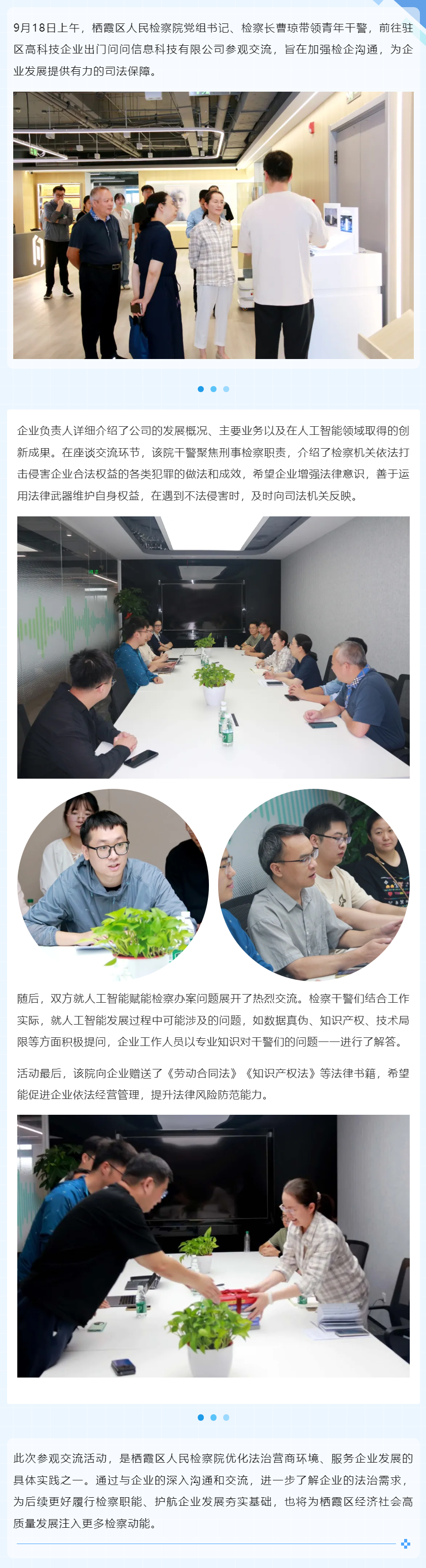 服务企业面对面!南京市栖霞区检察院赴高科技企业参观交流