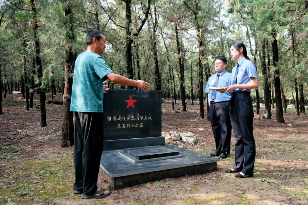 缅怀不止于追忆,更在于守护与传承。本次活动也是徐州经开区检察院公益诉讼 “回头看” 的生动写照。早在2023年3月,我院接到 “益心为公” 志愿者反馈烈士纪念设施年久失修、散葬烈士墓面临侵蚀等问题后,便迅速开展实地调查,联合南京军事检察院及多部门组建工作组,最终推动徐庄镇洞山革命烈士生态陵园落地,并建立专职人员与志愿者结合的管护机制。同时,在建设中发现杨礼门烈士身份信息被误记为 “杨礼梅”,经多方查证,最终为烈士 “正名” 并找到亲人。